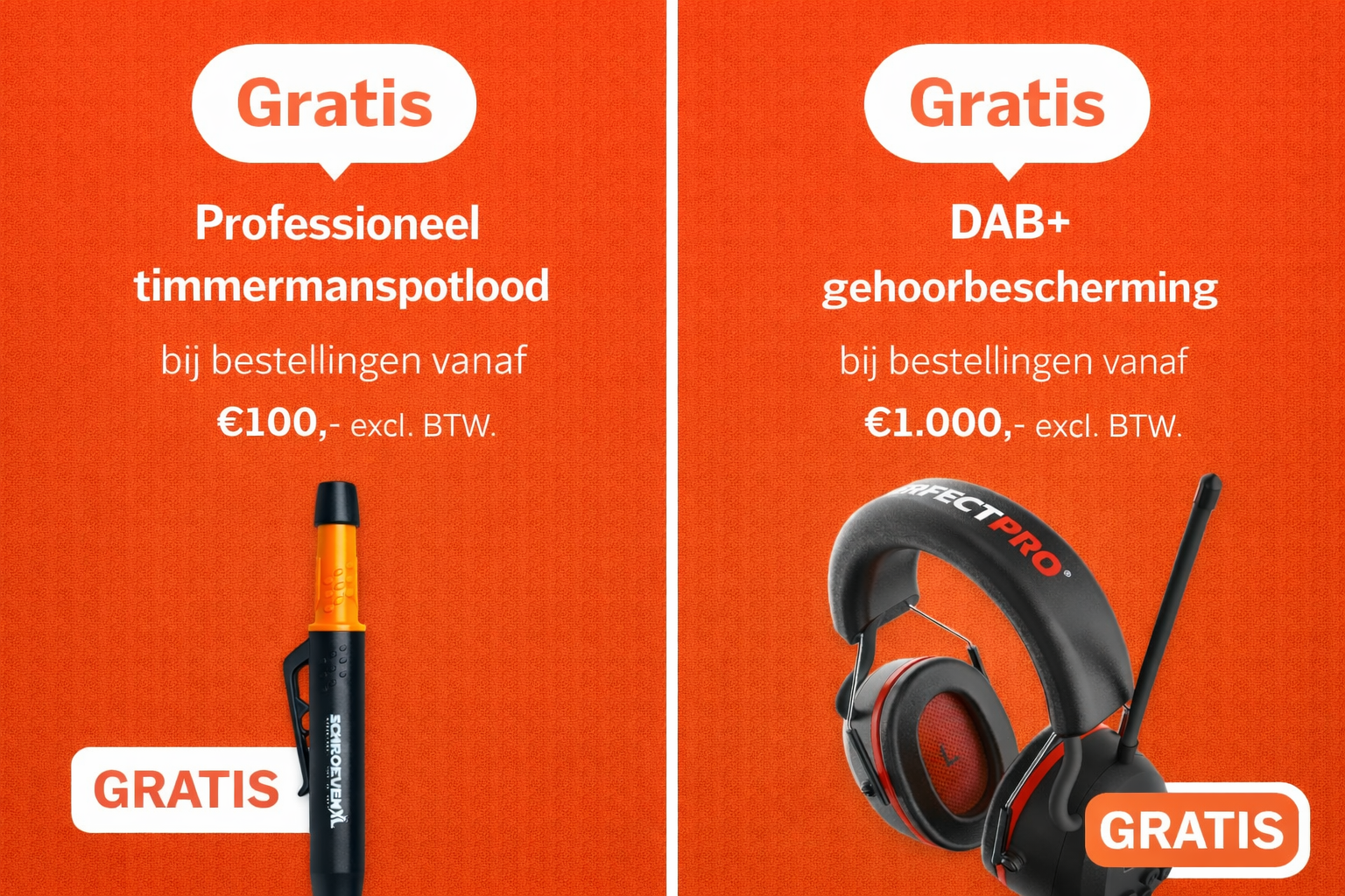 - Gratis impact schroefbit t.w.v. €2,30 bij iedere doos*
